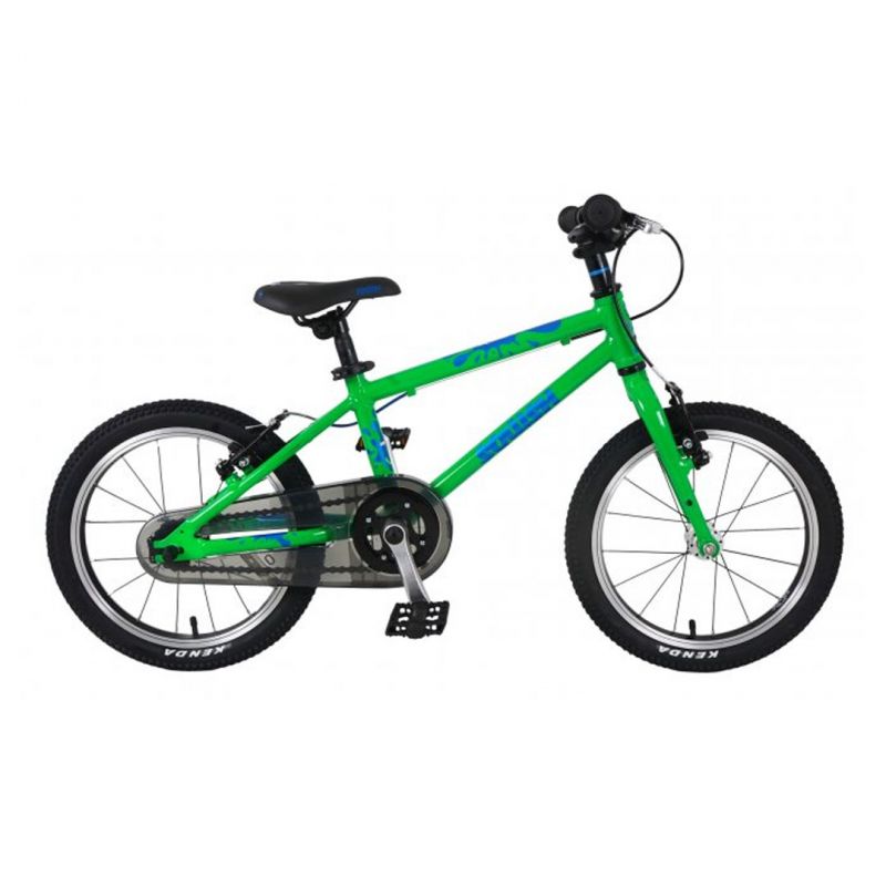 16" wheeled kids bikes are perhaps one of the most common sizes that parents choose. For kids aged approx 5yrs and up, this is the point that your child will really get to grips with life on two wheels. We've kept things as simple and as fun as possible so that your child only has to concentrate on enjoying themselves. Shortened 102mm cranks, junior specific stem and grips and grippy little pedals mean the bike will fit perfectly. All this, and weighing just 6.3kg!